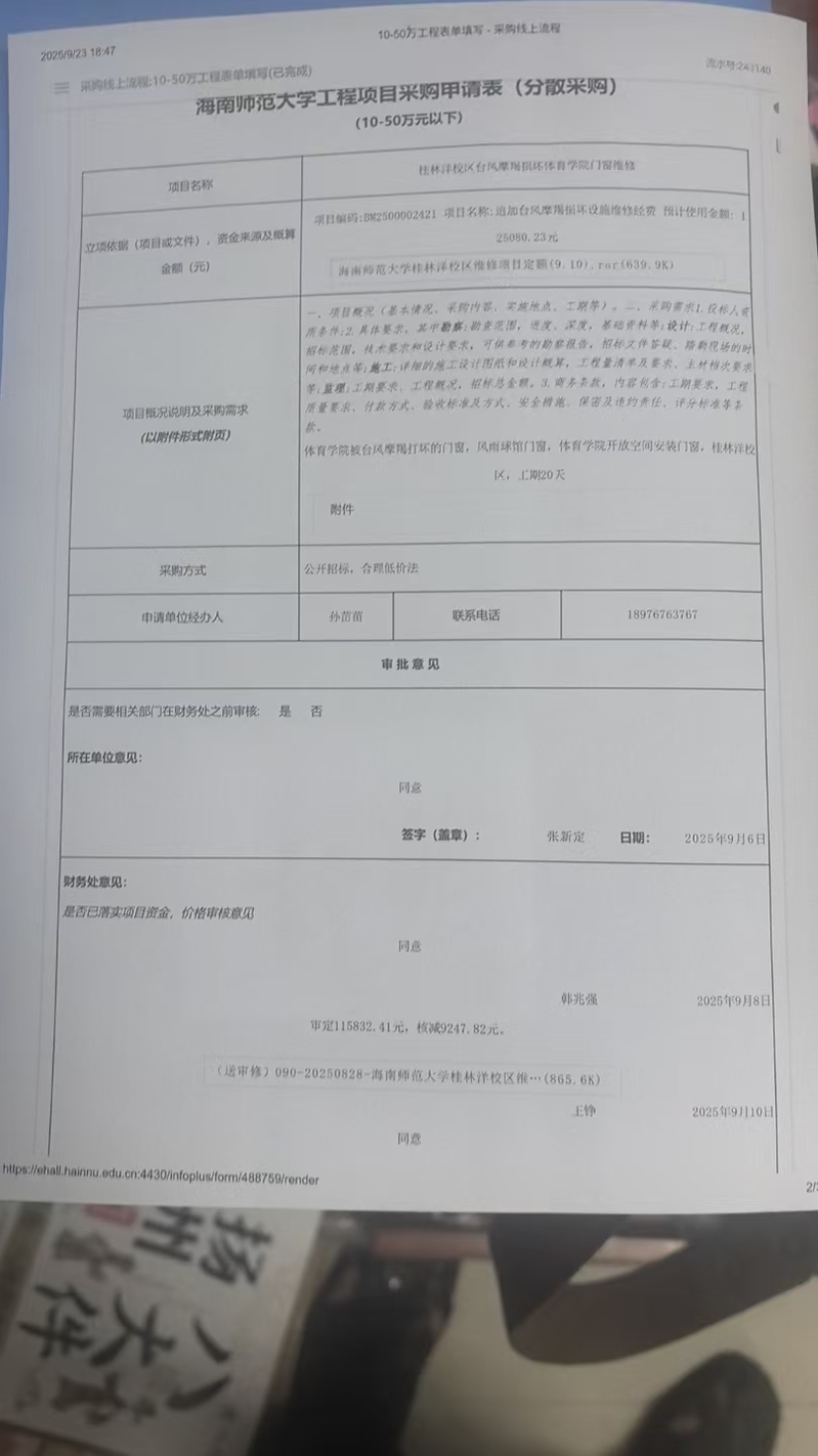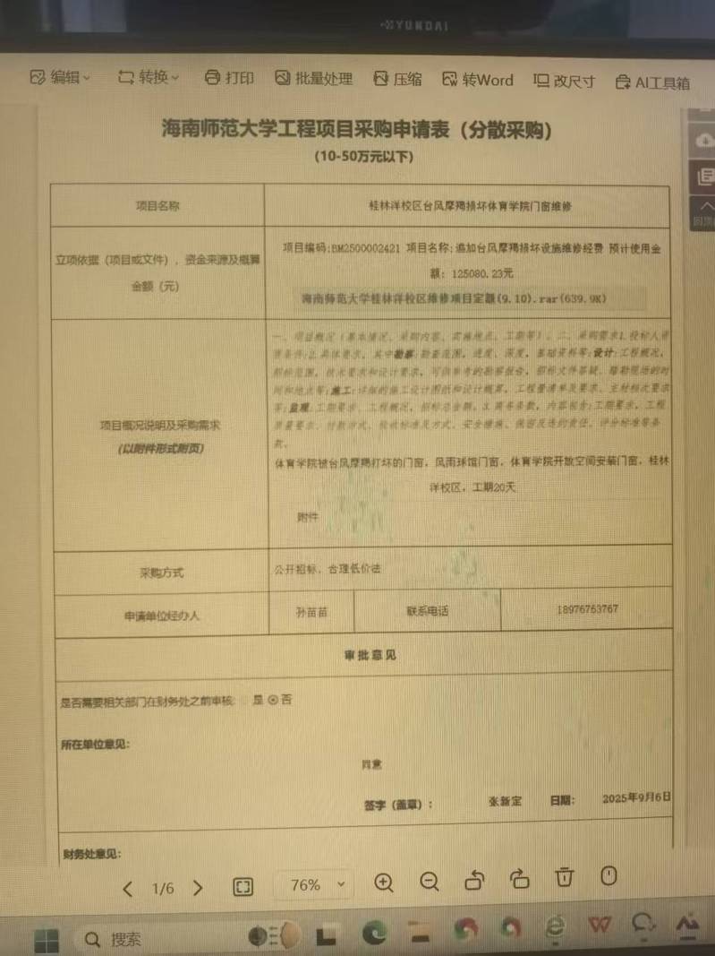 关于桂林洋校区台风摩羯损坏体育学院门窗维修项目的采购申请公示