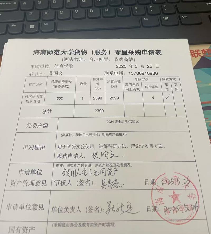 海南师范大学货物(服务)项目分散采购申请表5.25