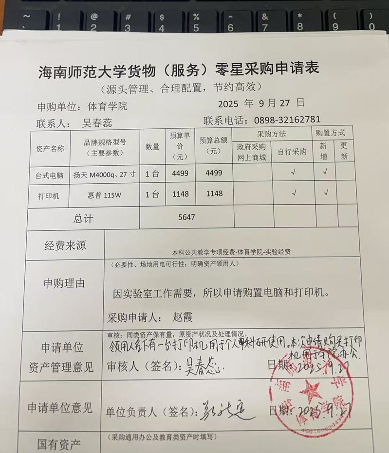海南师范大学货物(服务)项目分散采购申请表9.27