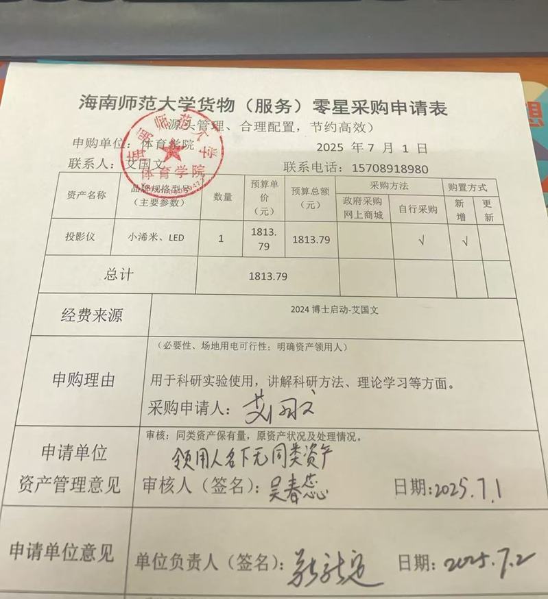 海南师范大学货物(服务)项目分散采购申请表7.1