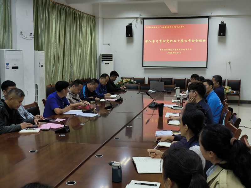 11月4日下午,体育学院、足球学院党委理论学习中心组2025年第六次学习(扩大)会议在桂林洋校区体育综合楼三楼会议室召开。全体党委委员参加会议。各办公室行政教辅人员、系主任、专业负责人、党支部书记列席会议。会议由体育学院党委书记郑骁鹏主持。