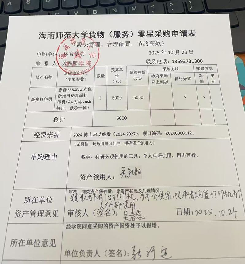 海南师范大学货物(服务)项目分散采购申请表10.24